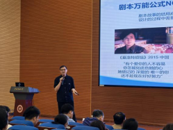 随后,尹英博老师讲授了由他总结设计的“剧本四要素”,通过系统化的讲解,以“值得追随的主角”、“生死攸关的目标”、“激烈的冲突与对抗”、“升华/反转/开放结局”四个主体部分进行了分别讲述,其间引用大量丰富的电影事例,使教学内容浅显易懂,便于学生接受。
