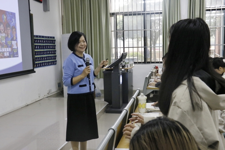 课堂上,梁洪坤老师凭借扎实的专业知识、丰富的教学经验以及生动有趣的教学方法,深入浅出地讲解了皮亚杰认知发展理论的核心要点,帮助学生构建清晰的理论框架。她巧妙地运用案例分析、互动问答等多种教学手段,充分调动了现场学生的积极性。